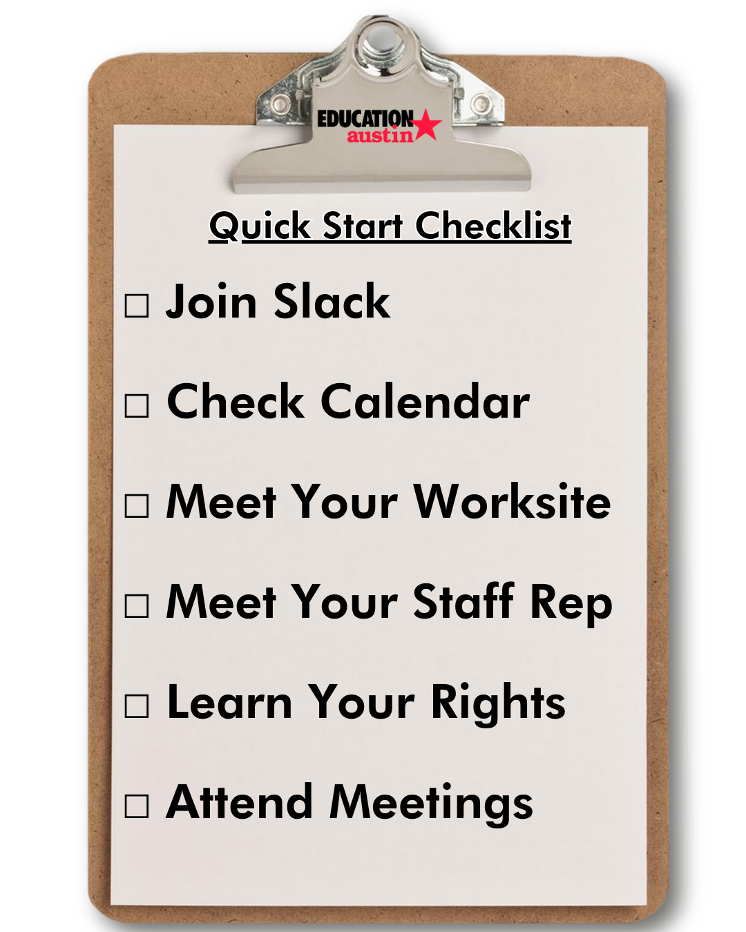 Education Austin has 2 on staff organizers that support worksites with questions, workplace concerns, and organizing. Reach out to the office to learn who your staff contact is so you know who to call if you need guidance or support.